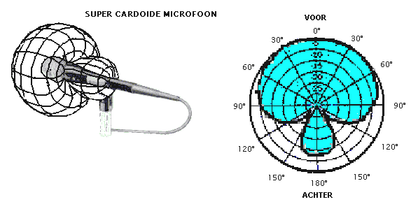 supercardioid en hyper-cardioide vormen micros kun je beter richten en pikken het geluid uit een bepaalde richting beter op dan uit andere richting. Dit heeft als voordeel dat je omgevingsgeluid beter kunt afsluiten Het nadeel is dan natuurlijk dat de cardioide microfoon een beperkte werkhoek heeft. Voor een normale cardioide microfoon is dit ongeveer 130 graden. De super cardioid zit op ongeveer 115 graden en de hyper cardioid op 105 graden. De laatste twee pikken echter ook iets op aan